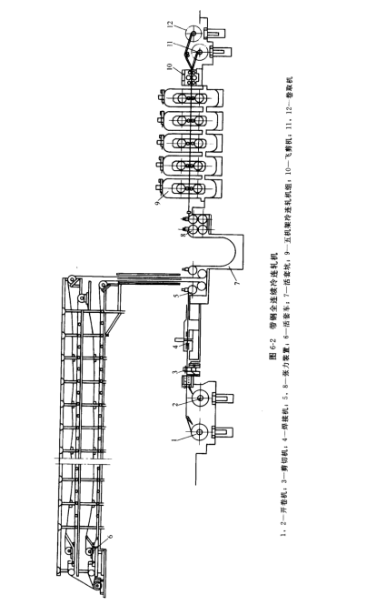 自 1979年開始,出現(xiàn)了全連續(xù)冷連軋機,如圖6-2 所示。這種軋機只要****次引料穿帶后,就可實現(xiàn)連續(xù)軋制。 后續(xù)帶卷的頭部通過焊接機與前一帶卷尾部焊接在一起,軋成后用飛剪機分卷。并由兩臺卷取機交替卷取帶鋼。 全連續(xù)冷連軋,機即使在換輥時。帶鋼依然停留在軋機內(nèi),換輥后可立即進行軋制。采用全連續(xù)冷連軋機,可以提高生產(chǎn)率 30%~50%,產(chǎn)品質(zhì)量和收得率也都得到提高。